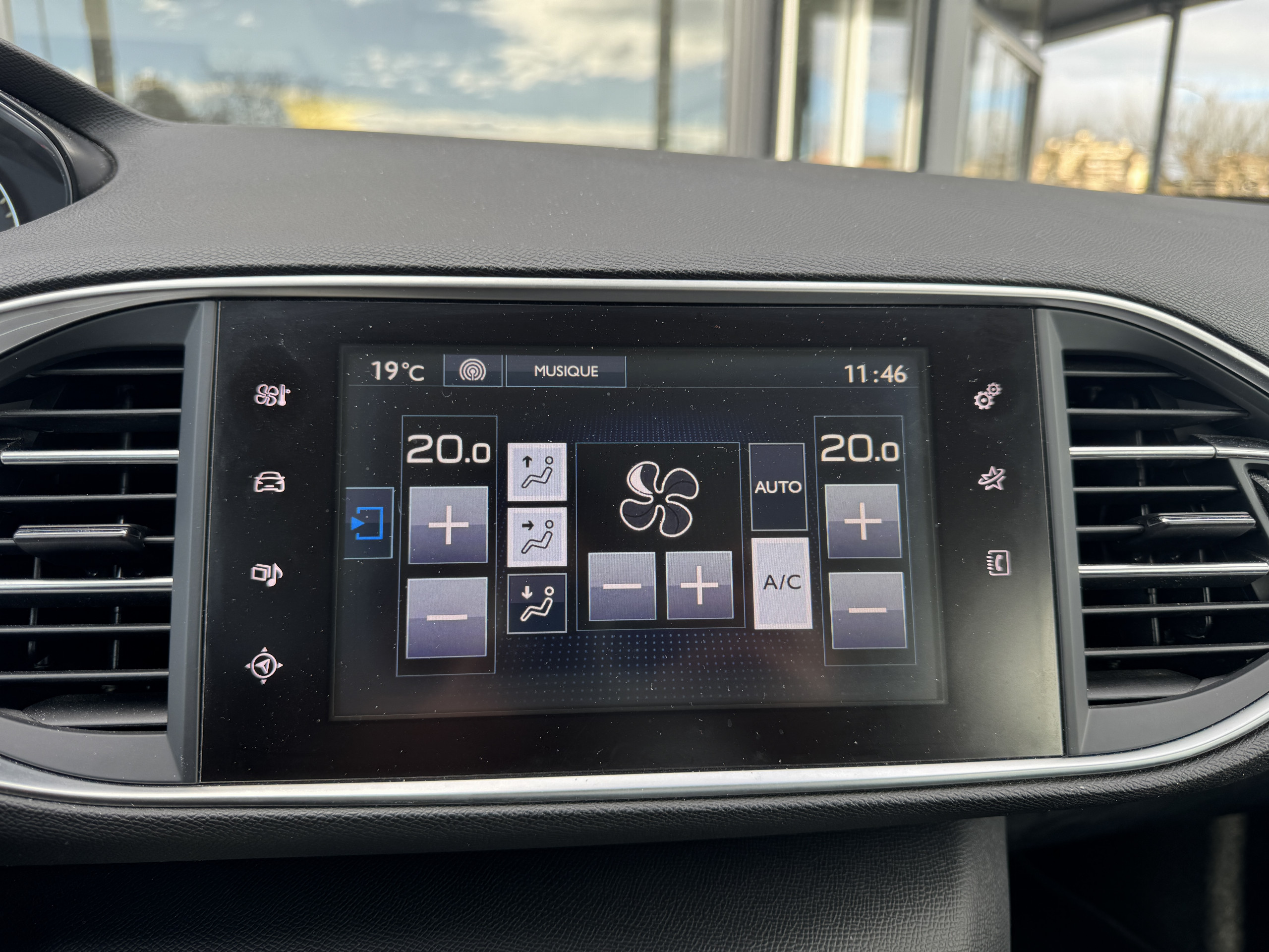 commande ventilation additionnelle siège passager, avec affichage digital