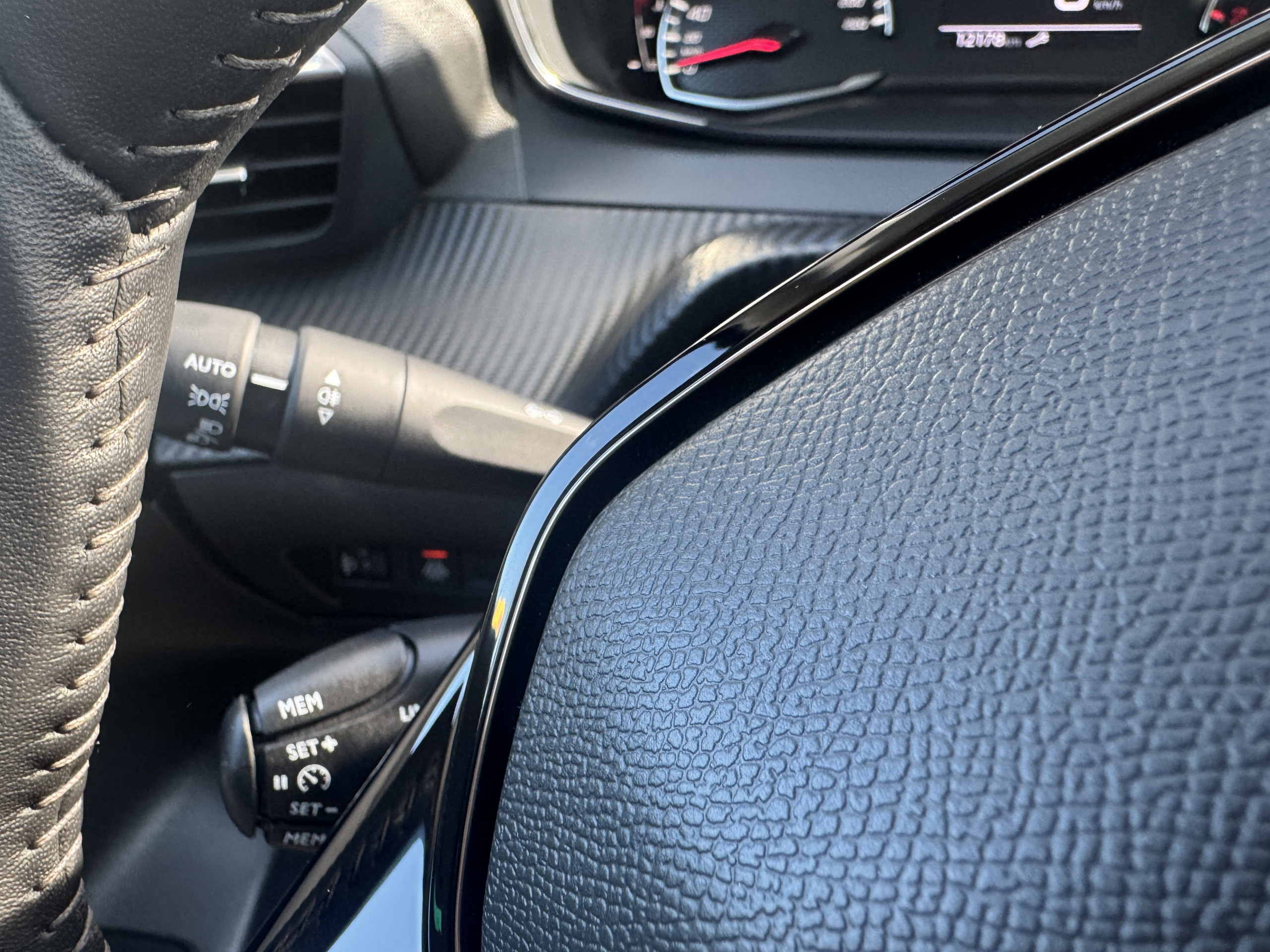 volant cuir, réglable en hauteur, réglable en profondeur, multi-fonctions