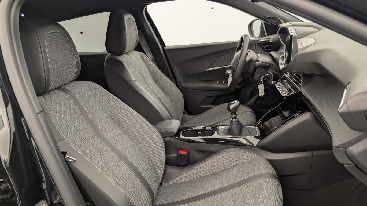 eléments de style intérieure panneaux de portes av avec décor carbone et baguette noir brillante avec tampographie quartz, accoudoirs de porte av et ar tissu/tep isabella avec surpiqûre quartz