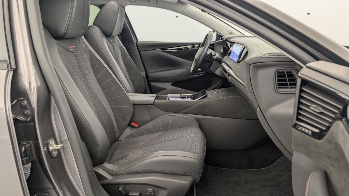 intérieur tissu tressé basalte avec alcantara : planche de bord en alcantara panneaux de portes en alcantara console centrale en alcantara sellerie en tissu tressé basalte avec alcantara et toile ds décors de panneaux de porte chrome guilloché volant en cuir fleur mistral avec surpiqûres ciel de pavillon salin