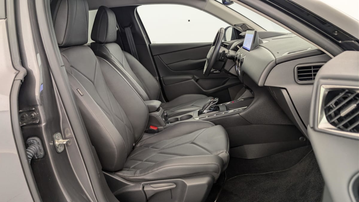intérieur cuir grainé noir basalte : ciel de pavillon gris galet volant cuir fleur décor noir basalte façon écaille siège cuir grainé noir basalte