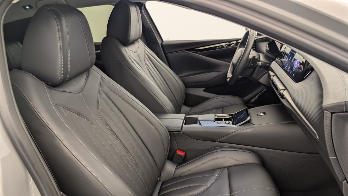 intérieur cuir grainé noir basalte et toile ds : ciel de pavillon clair décors de panneaux de porte chrome guilloché volant en cuir fleur mistral console centrale en toile ds mistral planche de bord en toile ds noir basalte façon écaille panneaux de portes en toile ds noir basalte façon écaille sellerie en cuir grainé noir basalte et toile ds parties centrales des sièges av, partie centrale des sièges latéraux ar et partie av des appuie-tête en cuir. bourrelets latéraux des sièges av, accoudoir central et siège central ar, et parties latérales et ar des appuis tête en toile ds.