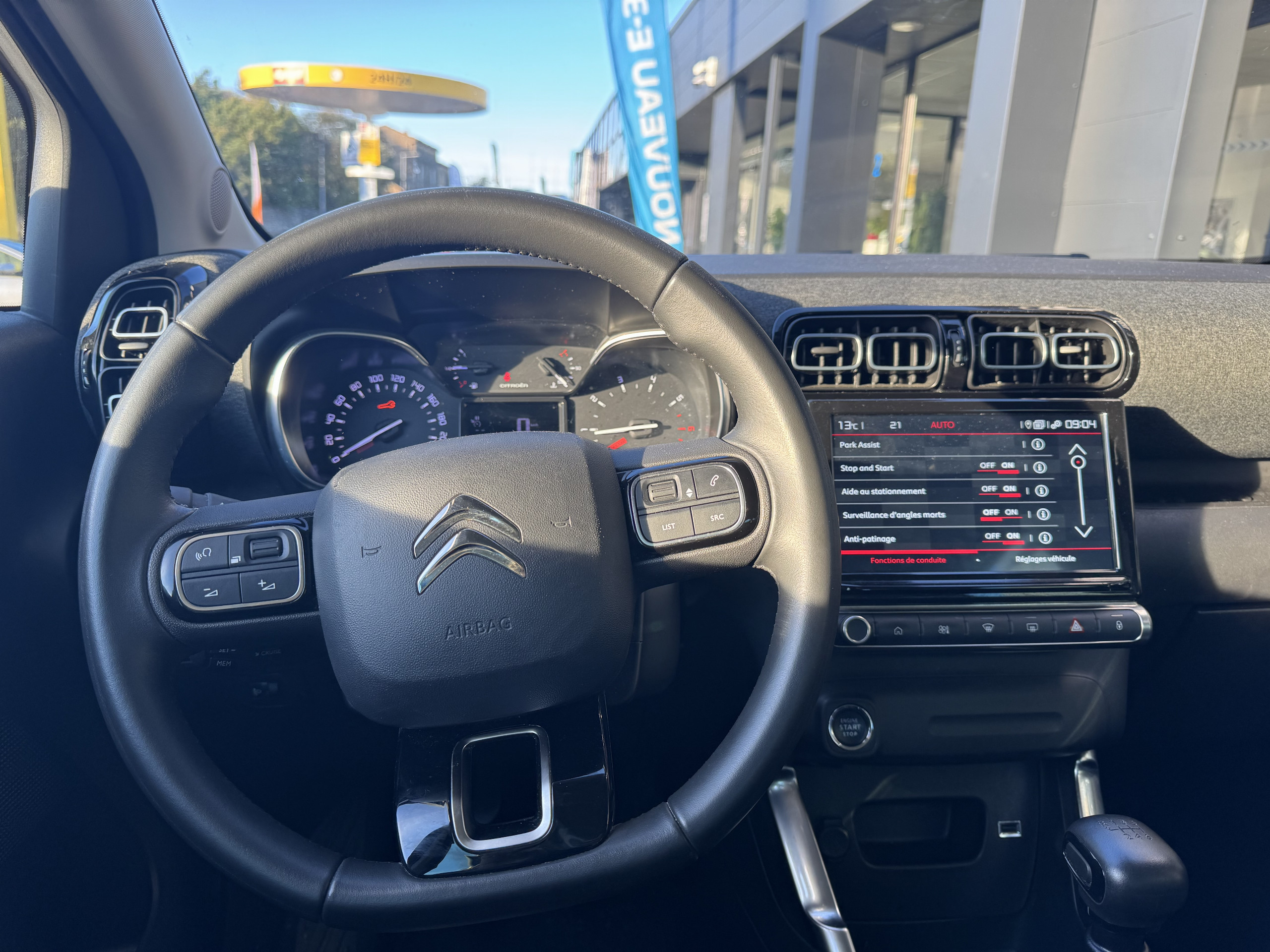 volant cuir, réglable en hauteur, réglable en profondeur, multi-fonctions