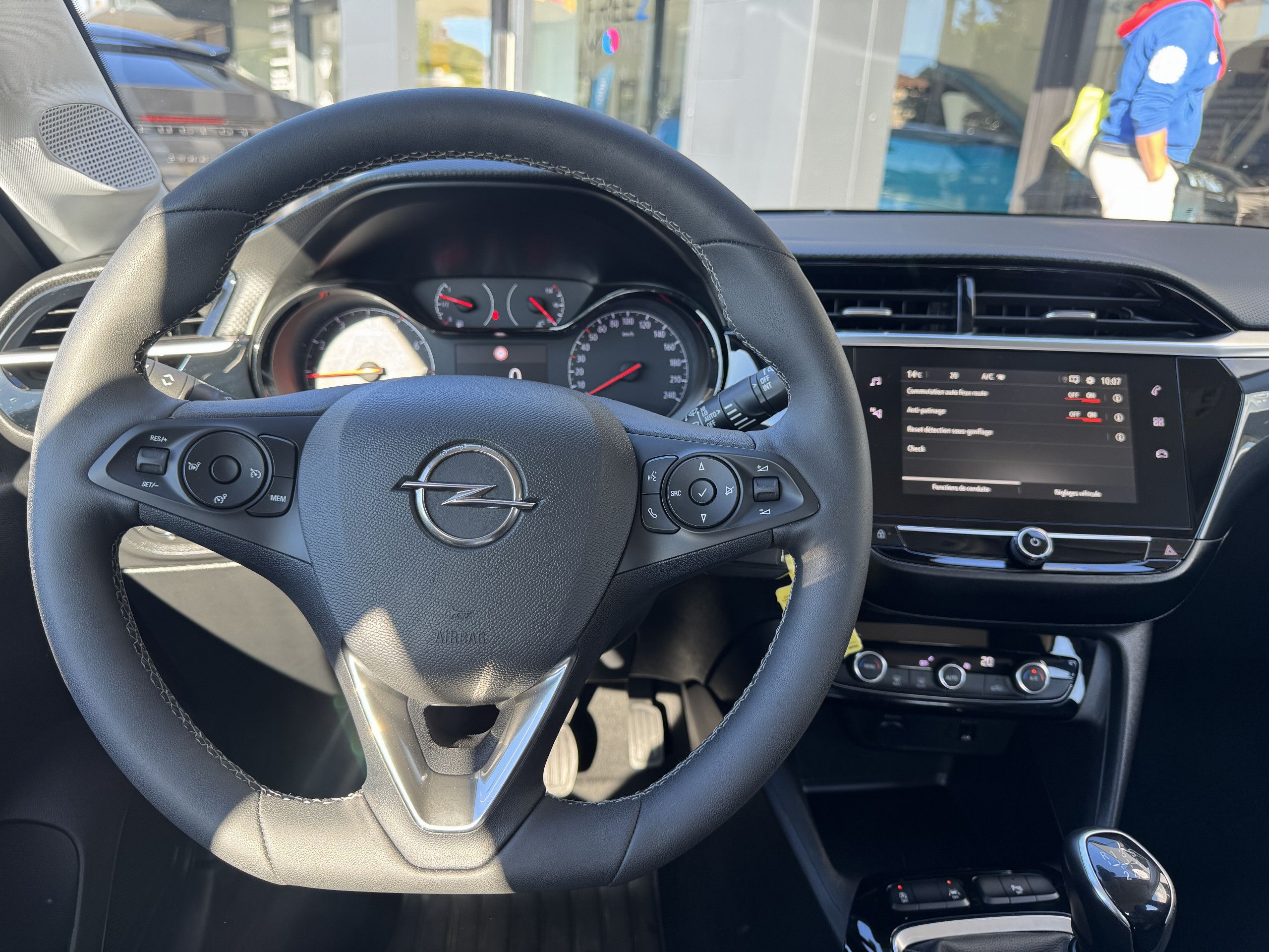 volant cuir, réglable en hauteur, réglable en profondeur, multi-fonctions