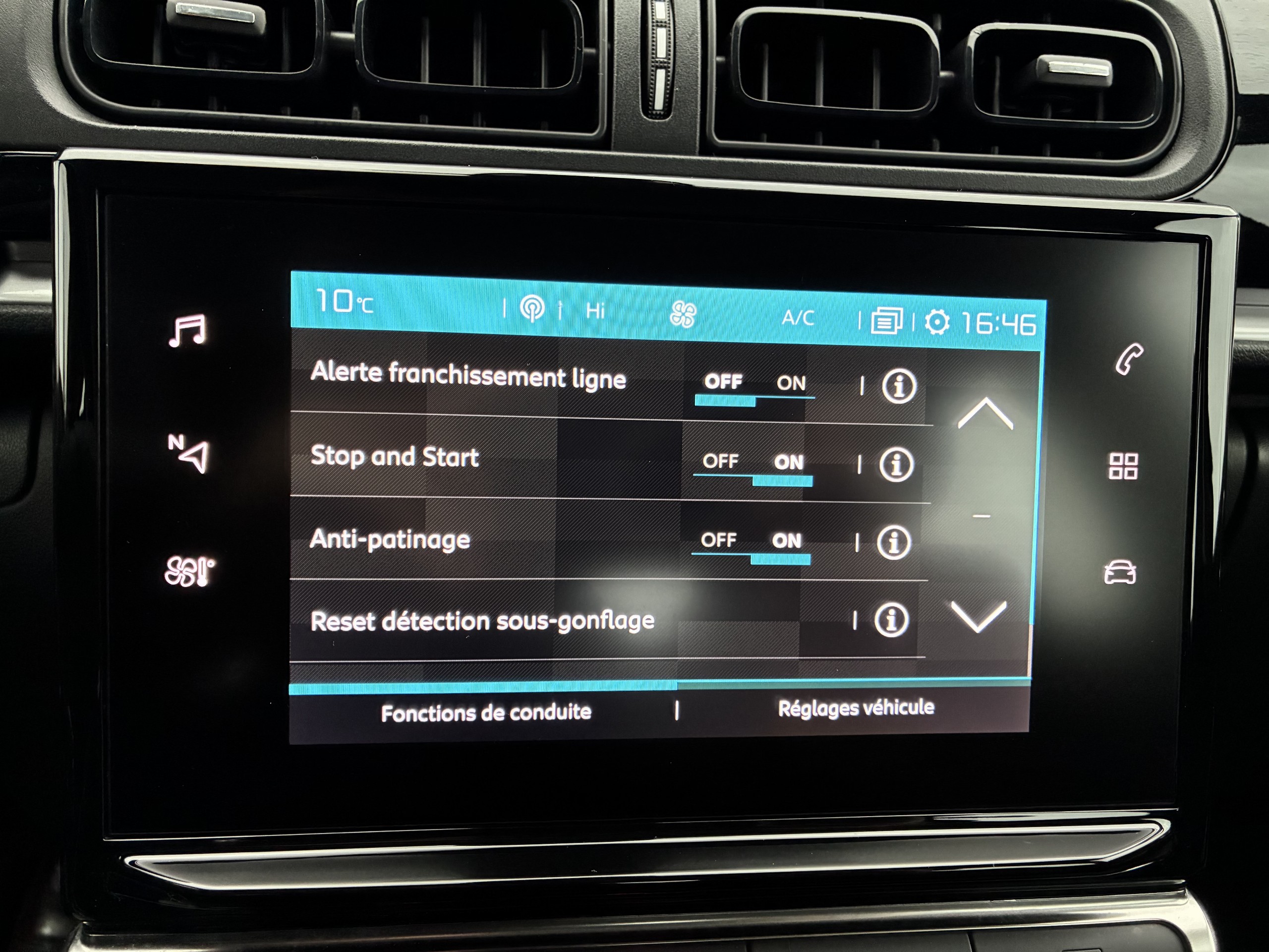 avertisseur de franchissement de ligne vitesse max de déclenchement 180 km/h 112 mph