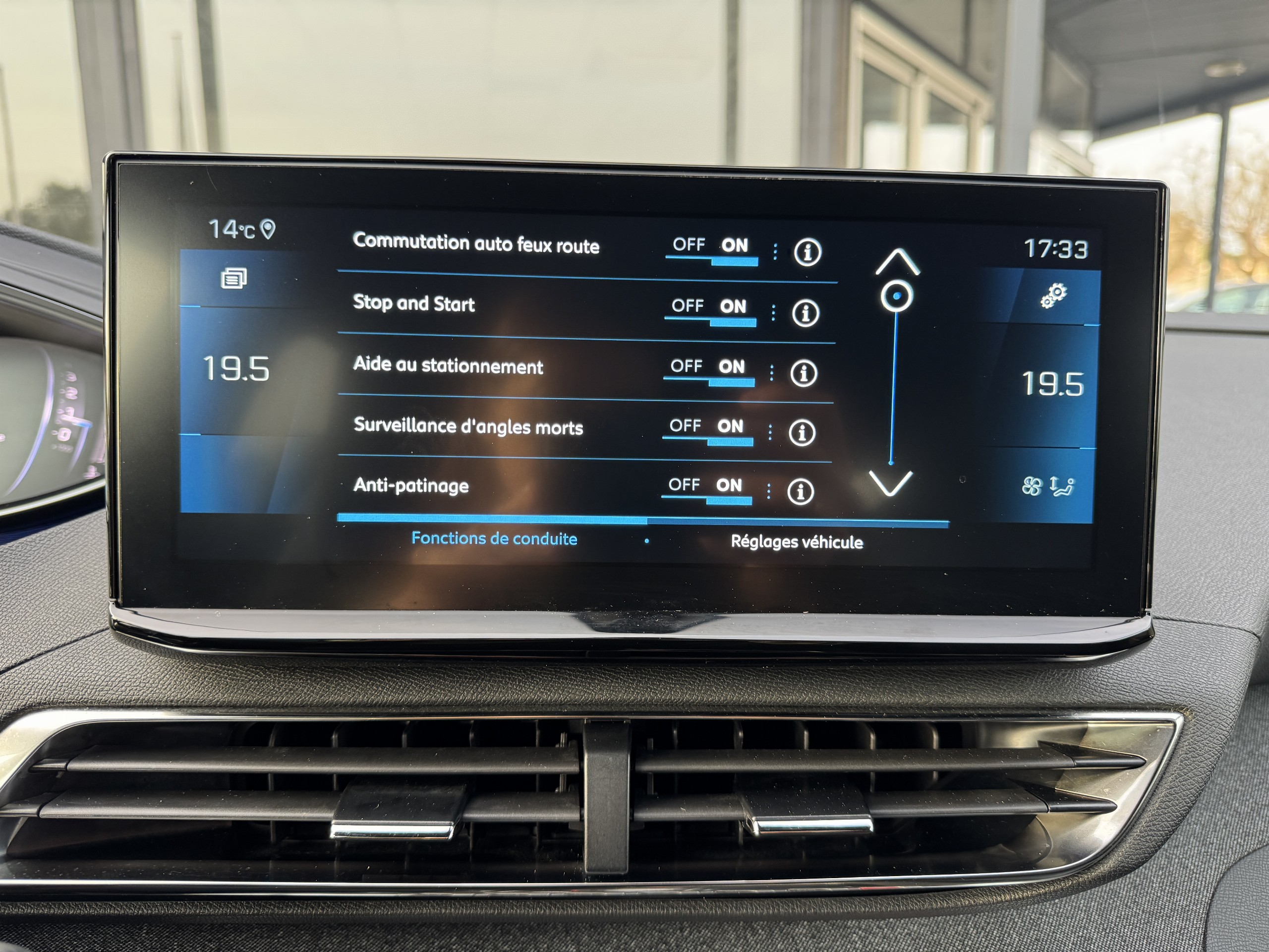 contrôle des phares: allumage automatique, feux de route/croisement automatiques, fonction antibrouillard, réglage en hauteur automatique