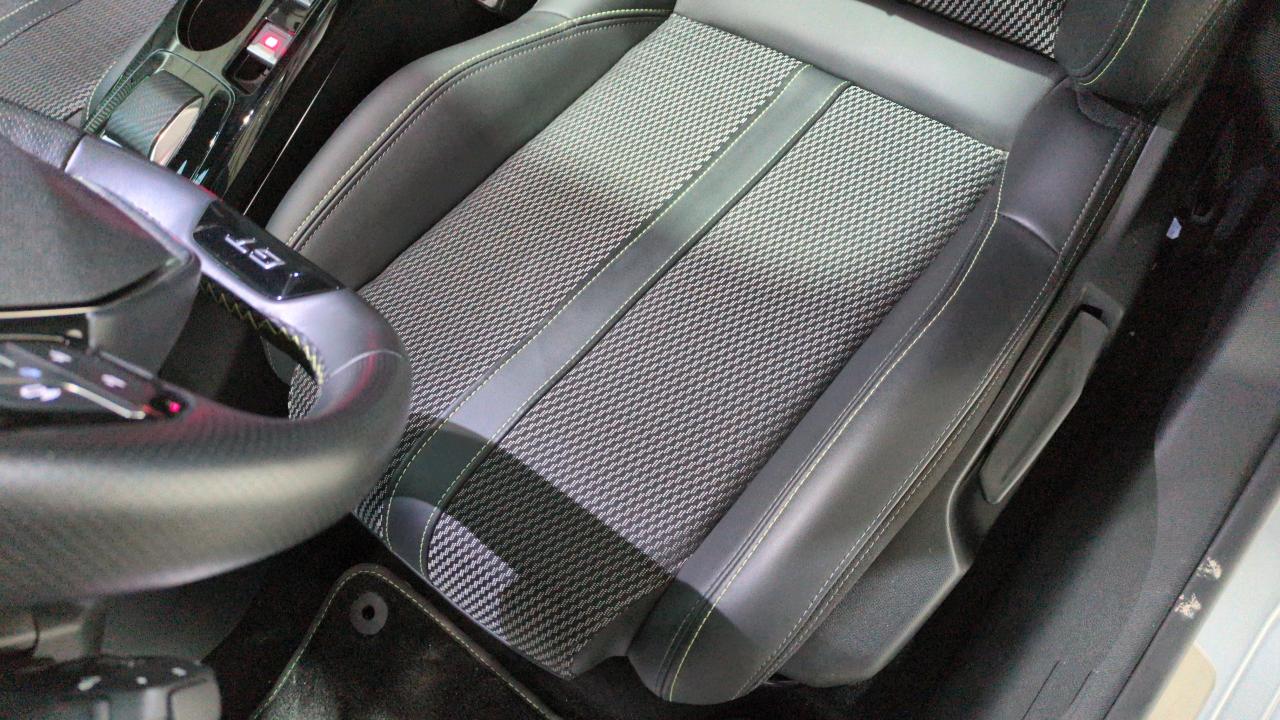 Volant compact cuir fleur avec commandes multimédia intégrées et badge GT