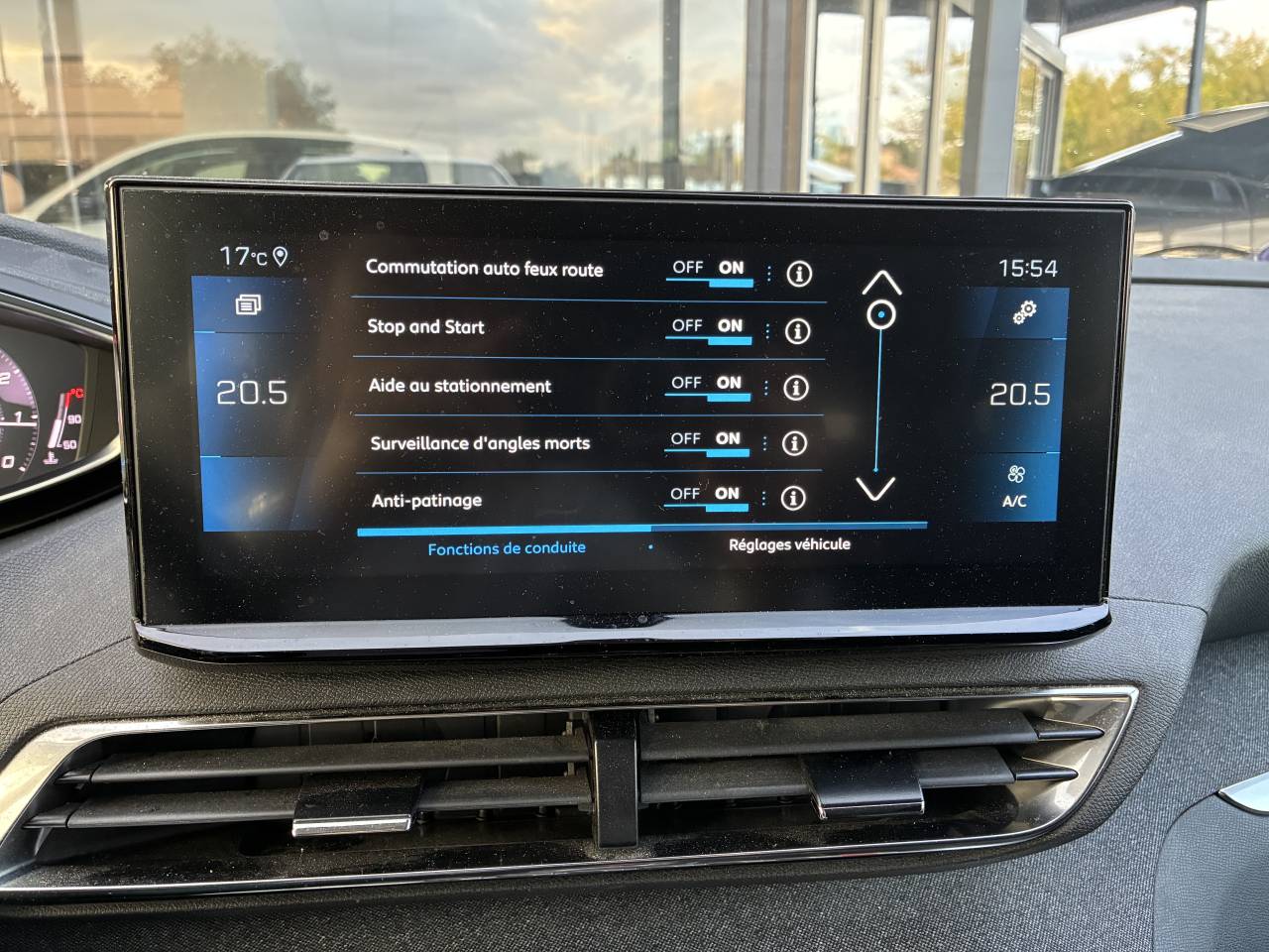 contrôle des phares: allumage automatique, feux de route/croisement automatiques, fonction antibrouillard, réglage en hauteur automatique